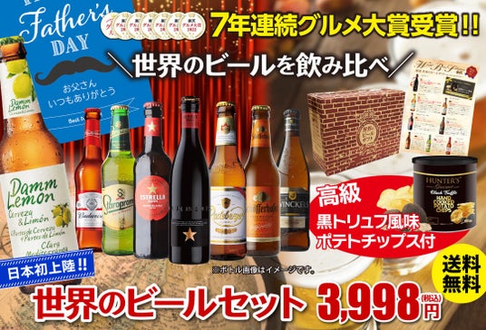 『お酒の専門店 リカマン楽天市場店』(運営会社:株式会社イズミセ)では、累計販売数160,000セットを突破したロングセラー商品「高級ポテトチップス付き 世界のビール8本セット」の父の日限定セットの販売を開始いたしました。