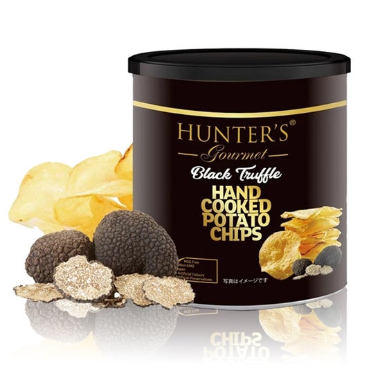 ワンランク上の晩酌にハンター社の中でも絶大な人気を誇る、黒トリュフ風味の高級ポテトチップス付き。缶を開けるとトリュフの香りが広がり、一口ごとに濃厚な風味が楽しめます。