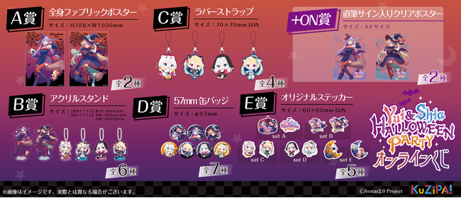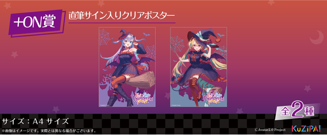 商品は、全身ファブリックポスター、アクリルスタンド、ラバーストラップ、57mm缶バッジ、オリジナルステッカー、「+On Challenge」景品の直筆サイン入りクリアポスターなど、ハロウィン仕様のクジパ限定描き下ろしデザインのアイテムを是非ゲットしてください!