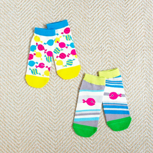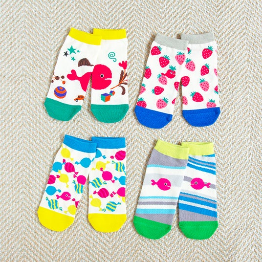 柄は全部で4種類ですが、2種類を1セットにして販売いたします。自分で洋服や靴下を選びたいお年頃の子どもたちにぴったり! 大人の方にももちろん、毎日どの絵柄にしようか楽しく選んでいただきたいアイテムです。