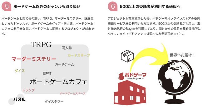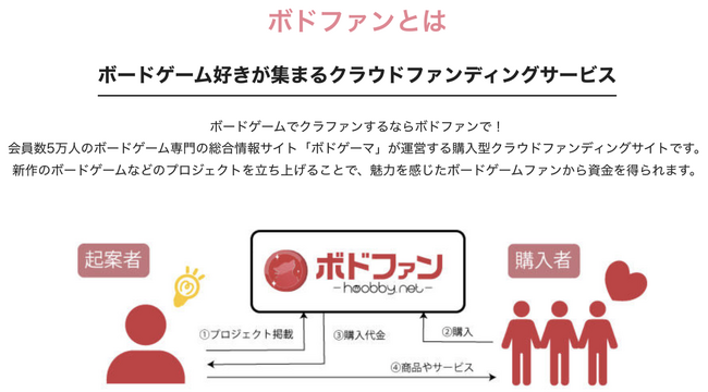 内容:ボードゲーム関連のプロジェクトに特化した購入型クラウドファンディングサイト