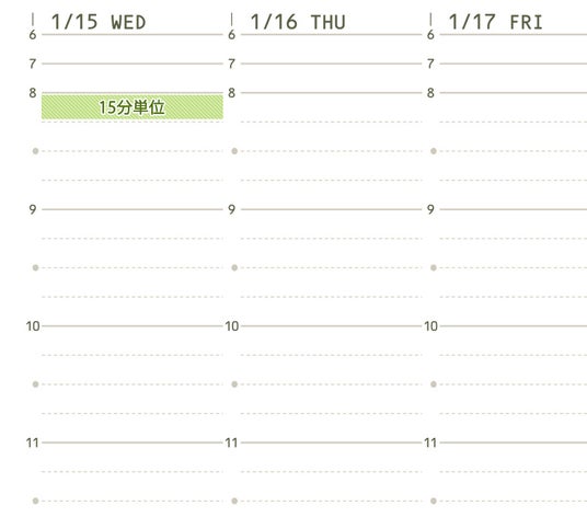 1.15分単位で予定を管理できる(週間バーチカルページ)