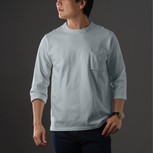 半袖よりもちょっと長めのこの丈は、暑くても普通に半袖と同じ感覚で使えるだけでなく、スタイリングのニュアンスも作ることができ着こなしに幅が出せます。また着用シーズンも、春から秋まで長く使えるところも嬉しいポイントです。