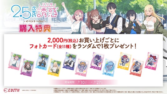 株式会社イーディス(本社:東京都豊島区、代表取締役:森俊平)は、TVアニメ『2.5次元の誘惑』のオリジナル描き下ろしイラスト「イベントへGo!」を使用した商品をアニメガ×ソフマップで先行販売いたします