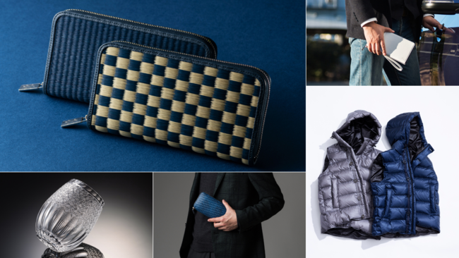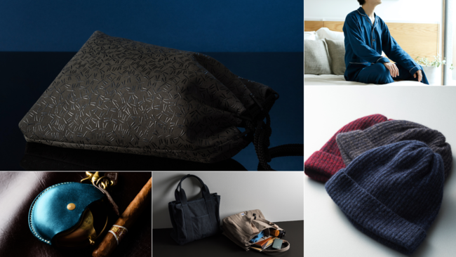 戦国の武将や江戸の洒落者に愛好された伝統工芸品「甲州印伝」の山梨県甲府市【印傳の山本】の合切袋をはじめ、大阪府堺市の和晒【角野晒染】が生む極上の肌触りで良質な睡眠を誘なう究極の紳士パジャマ、岩手県北上市のカシミヤ専門ブランド【UTO】による最高峰のカシミヤで作ったニットキャップなど、一度手にしたら虜になる逸品ぞろい!