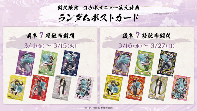 <期間限定 コラボメニューご注文特典 ランダムポストカード>コラボメニューご注文1点ごとにポストカード(全7種)をランダムで1枚プレゼント!