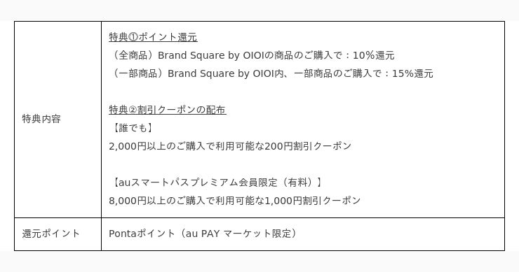 (2)マルイ周年祭(https://plus.wowma.jp/user/38919370/plus/lp_sale/index.html)Brand Square by OIOIは、2017年の出店から7周年を迎え、これを記念して、Brand Square by OIOIにおいて、「マルイ周年祭」を実施します。最大15%のポイント還元やBrand Square by OIOIでご利用いただける割引クーポンをご用意します。