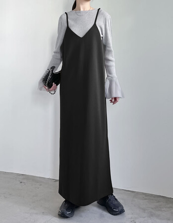 [高身長/大きいサイズ有][イージーケア]ジョーゼットポンチロングキャミワンピース