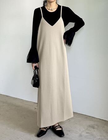 程よいカジュアルさと、きちんと感の両方を兼ね備えた、キャミワンピース。