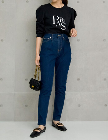 [大きいサイズ有]2TYPEリサイクルハイウエストテーパードデニムパンツ