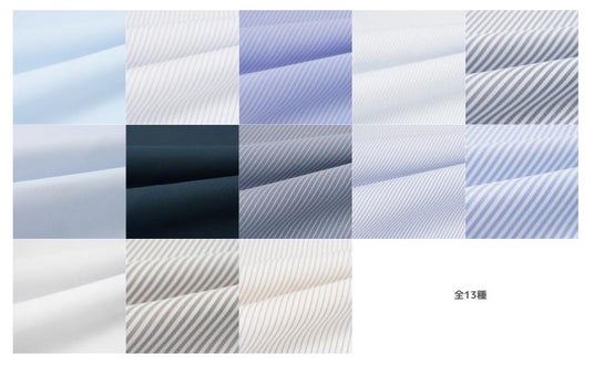 ビジネスに使いやすいカラーが全13色「NON IRON QUICK DRY JERSEY」は、実際にオーダーいただいた方から、着ていて窮屈感がない、自宅で洗ってもシワにならない、高級感があり肌触りも良かった、など、多くの声をいただいており、FABRIC TOKYOのオーダーシャツの中でリピート率No.1のアイテムです。