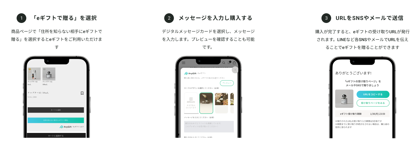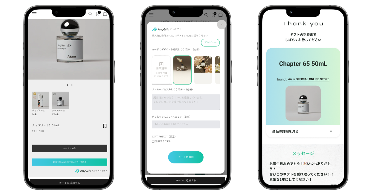 AnyReach株式会社Aiam OFFICIAL ONLINE STOREの商品がすぐにeギフトで贈れるように。