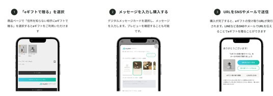 3)購入が完了すると、eギフトの受け取りURLが発行されます。LINEなど各SNSやメールでURLを伝えることでeギフトを贈ることができます。