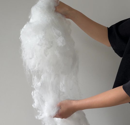 繊維を約3倍の長さにすることで、もっちり感がアップ。雲の中にいるような、包み込むようなふわふわ感が朝まで続きます。