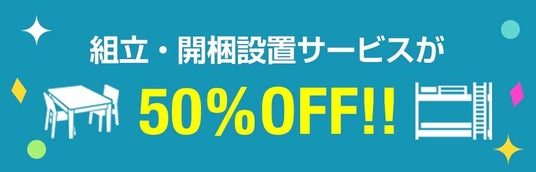 家具の買い替えの際に古い家具を引き取る引き取りサービスや、大型の家具をご注文頂いた際に便利な開梱設置サービスが10月4日限定で半額に!この機会に是非、家具の新調をご検討ください。
