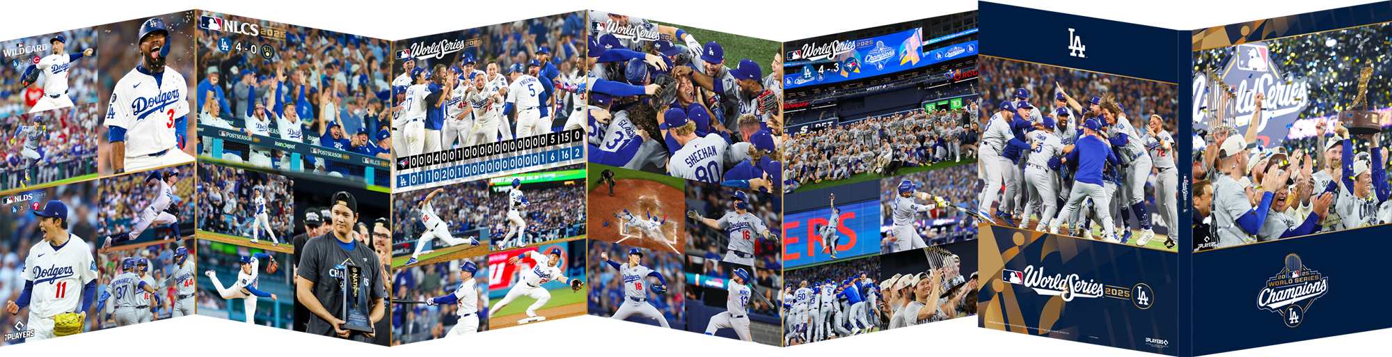 2025年メジャーリーグベースボール ワールドシリーズにおいて全7試合の死闘を制し、連覇を成し遂げたロサンゼルス・ドジャースの記憶に残る劇的なシーンをデザインした
