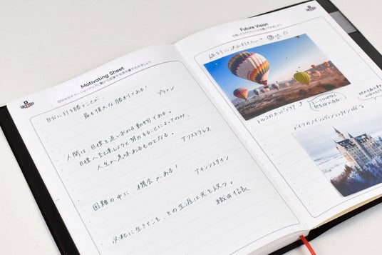また、目標への道のりを応援するためのページも用意。モチベーションシートとしてやる気を高める言葉を書く部分、合格したらやりたい事を書くフューチャーシートを搭載しました。