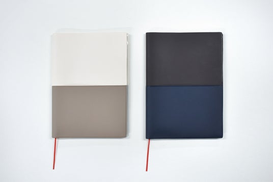 そしてカバーはあえてロゴを入れずシンプルにこだわりました。集中力を高めるカラーを選定し、バイカラー部分をポケット構造に仕立て、メモ等を挟むこともできるようデザインしました。