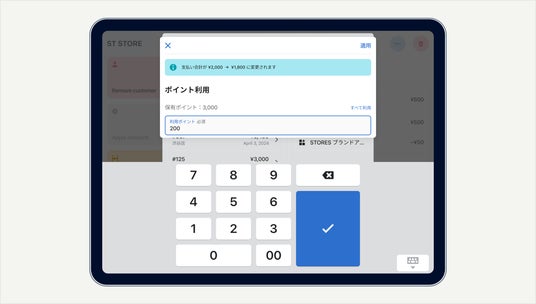 〈「Shopify POS」に対応したポイント管理〉Shopify POSで会員バーコードを読み取ると、店舗での会計時にもネットショップと同じようにポイントの利用や付与ができます。これにより、店舗とネットショップでのポイントの共通管理を実現し、顧客はどちらでも同じポイントを使えるようになります。(STORES ロイヤリティ)