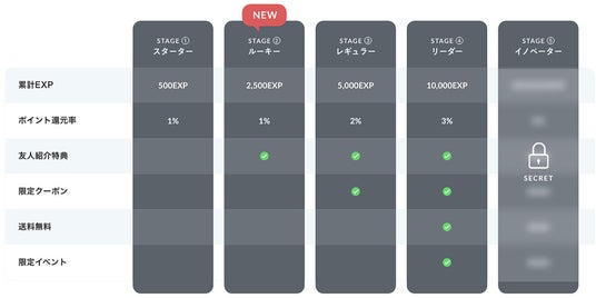 この度のリニューアルでは、ステージアップの条件の変更、新ステージの追加や、各ステージごとにお贈りする特典内容のアップデートを実施。