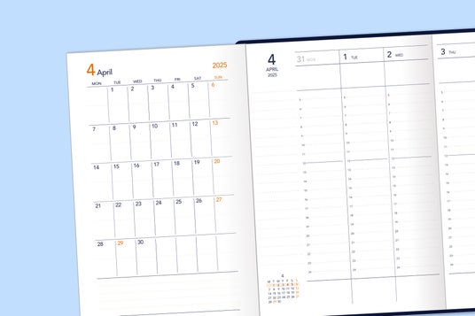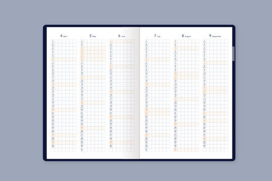 月と週の予定がひとめで見渡せるので、予定管理が素早く間違いなく行えるように。「タイパ」を重視する層だけでなく、タスクの多い社会人、家族の予定を管理する主婦層に絶賛されています。特殊な工程を必要とするため、製本技術に自信のある手帳メーカーだから実現した仕様です。