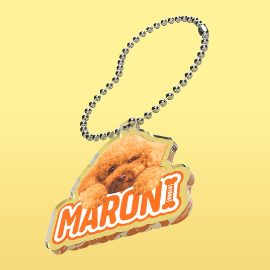 バッグやポーチに付けられる「マロン(漢)骨つきアクリルキーホルダー」、