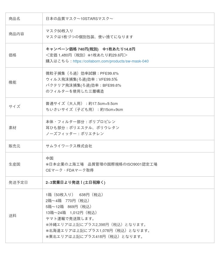 https://collaborn.com/products/sw-mask-113| 日本の品質マスク~10STARSマスク~
