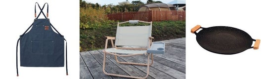 折りたたみチェアーや子供用エプロンなど、4月下旬頃のお届けで予約の受け付けを開始します。