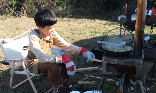 日常生活ではスマホやゲームに夢中になってしまう子どもたちも、薪拾い、火起こし、料理、後片付けだって自然の中では遊びになります。