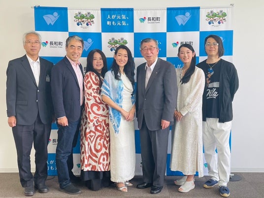 長和町町長/ 羽田健一郎氏を表敬訪問する様子(写真左から4番目・SAORI KANDA)