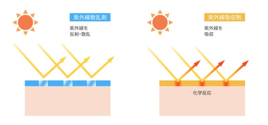 日焼け止めクリームには紫外線散乱剤と紫外線吸収剤を使用した2タイプがあります。肌質や使用シーンに合わせて使い分けたいので、2つの成分の違いもご紹介します。