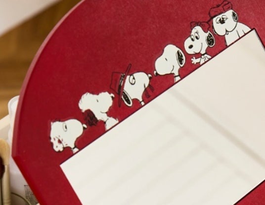 化粧品を収納できる商品を要望する声が多く寄せられたことから開発をスタートしました。スヌーピーのきょうだい6人が揃っているデザインのニーズが高かったため、ボックス正面の上部には、きょうだいたち6人が勢揃いしたイラストをあしらっています。