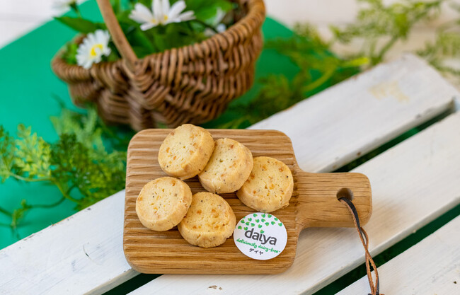 ヴィーガンクッキー卵や乳製品などの動物性食品不使用のモッツァレラタイプのデイヤを使用し、ブラックペッパーがアクセントに効いたコクと旨味が感じられる一品。お酒との相性もよいおつまみクッキーです。