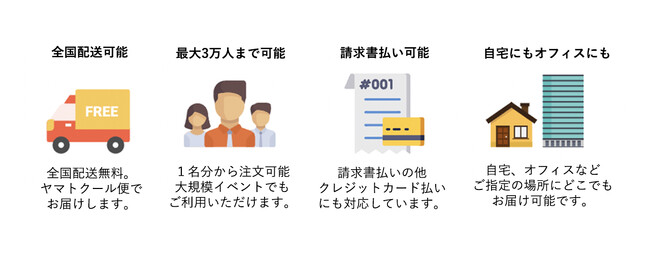 累計利用実績5,000社90万人と多くの企業様に利用いただいており、懇親会用の食事が手軽に手配できると喜ばれ