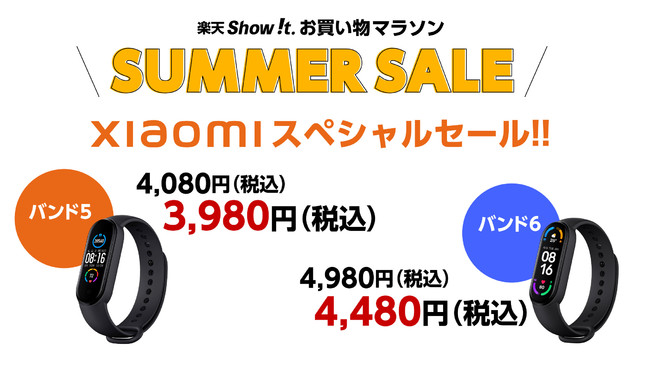 楽天市場「Show !t」は、8月19日(金)20時からXiaomi(シャオミ)のMi Band 5とMi Bband6をセール価格で販売致します。さらに、ポイント最大10倍プレゼント(一部商品を除く)を実施し、8月19日(金)20:00~8月23日(火)01:59まで開催される、楽天お買い物マラソンに参加します。Xiaomiのスマートウォッチが健康管理がしやすく、軽く装着感も気にならないバンド型で、これから運動の習慣をつけてスマートウォッチを取り入れようとしている人におすすめです。