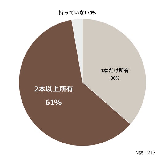 当社「噴霧式フレグランスディフューザー」ユーザーの約6割※が、当社フレグランスオイルを2本以上所有しています。