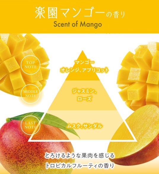 完熟マンゴーのとろけるような果肉を感じるトロピカルフルーティの香り