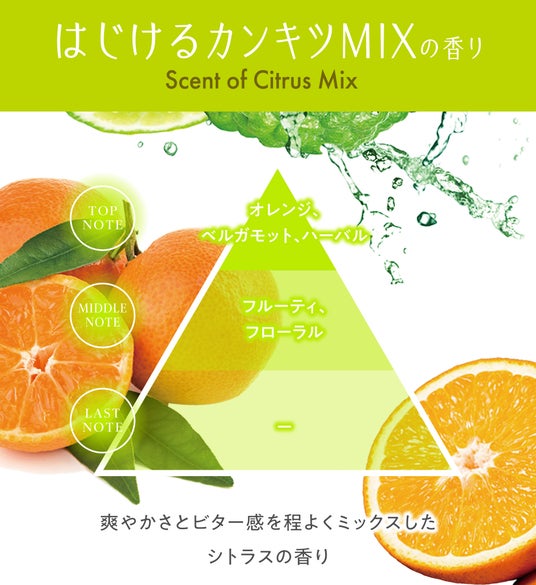 爽やかな柑橘果肉と果皮のビター感を感じる爽快なシトラスミックスの香り