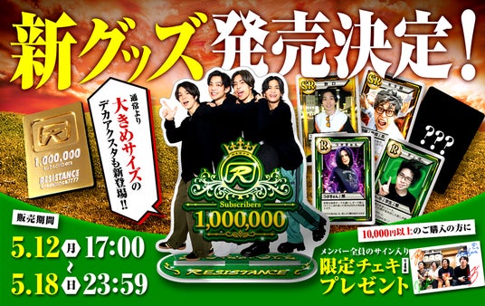 今回のラインナップには、YouTube登録者数100万人達成を記念した特別グッズや、レジスタンス初のトレーディングカードが登場!
