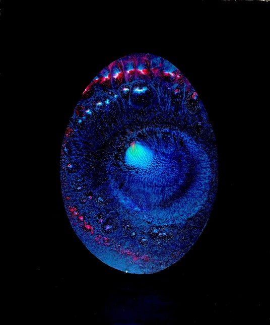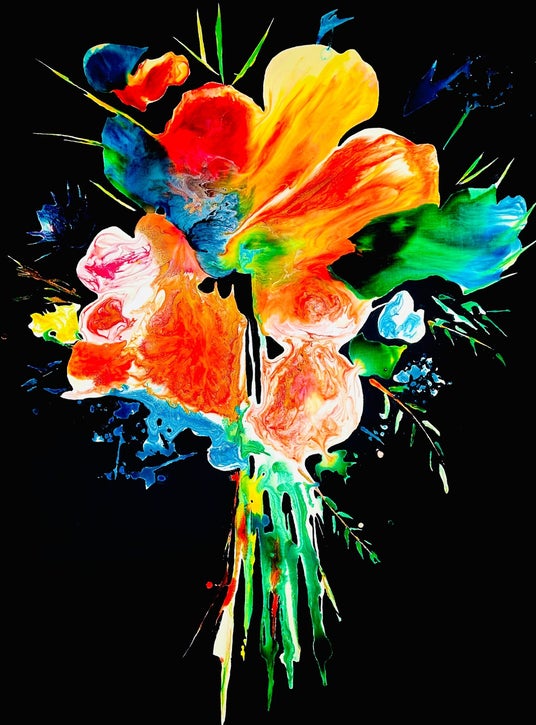 構想も下絵の準備もなくキャンバスに向き合い、そこに線が形をなし、色が反応していくままを描くというスギヤマ。人間の意図や固定観念を排除した生の反応、純粋な創作現象として作品が目の前に表れます。ギャラリーという有限の空間から無限にうねりゆく生命エネルギーを感じに、ぜひ会場へお越しください。