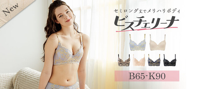 「ビスチェリーナ」はビスチェのようなセミロング丈で、トップとアンダーにしっかり差がついた理想のメリハリボディと美シルエットを作ることに特化した、バストも気分も上げてくれるブラ。