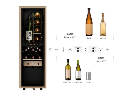 上室は約0℃~10℃、下室は10℃~20℃。飲み頃温度と熟成温度で使い分けも可能。