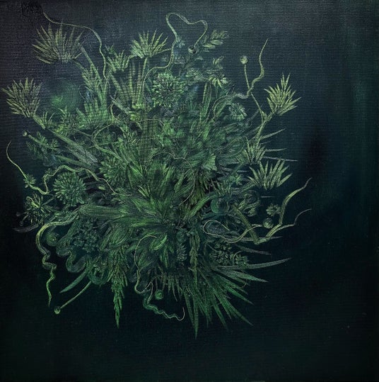 ruteNは、2020年より「絵描き」として活動を開始し、早々にアートコンペティションで頭角を現します。2023年には華道の一葉式いけ花の教授免状を取得し、華道の感性も取り込み自然界の生命の循環やエネルギーを可視化。「流転している世界」をテーマに作品制作を行なっています。