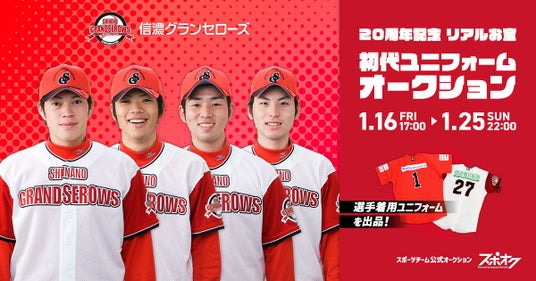 株式会社モバオク 株式会社モバオク(本社:東京都渋谷区、代表取締役社長:小一原 宏樹、以下モバオク)がエンゲート株式会社(本社:東京都中央区、代表取締役:城戸 幸一郎、以下エンゲート)と業務提携し提供するスポーツチーム公式オークションサービス「スポオク」にて、プロ野球独立リーグ・ベースボール・チャレンジ・リーグ(ルートインBCリーグ)所属の信濃グランセローズは2026年1月16日(金)より『信濃グランセローズ20周年記念 リアルお宝 初代ユニフォームオークション』を開始します。