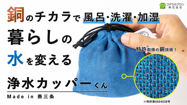 暮らしの「水」に銅の力をプラス|風呂・洗濯・加湿器に入れるだけのカンタン新習慣!【コデラカプロン株式会社】金属加工の一大産地、新潟県は燕三条で銅を極めるメーカー「コデラカプロン」より、独自の銅加工技術により誕生した、新たな浄水習慣を作り出す「浄水カッパーくん」がMakuakeに新登場。
