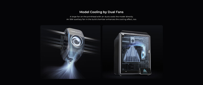 ダブルファンによるモデルの冷却プリントヘッドに搭載されたエアダクト付きの大型ファンが、モデルを直接冷やします。また、ビルドチャンバーに設置された18Wの補助ファンも冷却効果を高めているため、糸引きと歪曲が発生する前に、モデルが固まります。