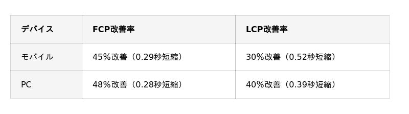 ※FCP(First Contentful Paint)…Webページで最初のコンテンツが表示されるまでの時間を示すパフォーマンス指標
