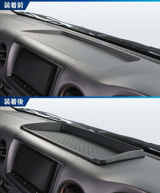 - 接着剤や両面テープは不要で、ダッシュボード形状に合わせて置くだけで設置完了