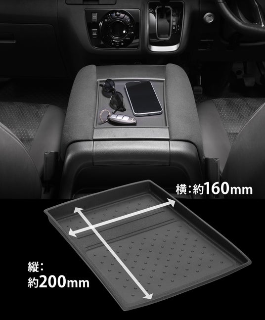 - センターコンソールのアームレスト間の凹みに合わせた設計で、ジャストフィット