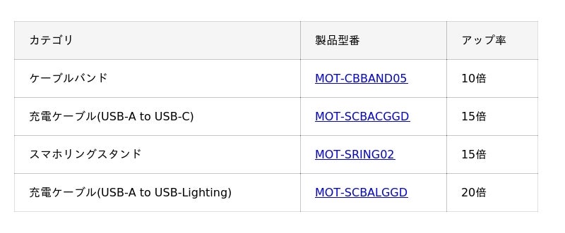 株式会社MOTTERU株式会社MOTTERU(モッテル)(本社:神奈川県海老名市、代表取締役:櫻田良太)は、10月14日(火)より開催される楽天市場『楽天お買い物マラソン』に合わせ、人気製品などのアイテム80点を最大約50%オフで販売いたします。